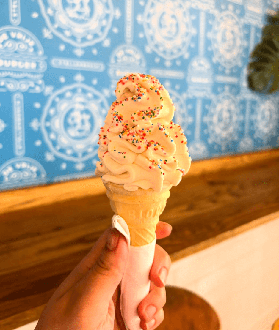 Elsewhere, nostalgia takes different forms. At Ouzeri, Chef Nic Charalambous builds an entire Cypriot menu inspired by his grandmother’s cooking, anchoring memory in lineage rather than trend. The old-school bakes and sweets at Ongetem – banana splits included – and the soft-serve ice cream cones at De Vrije Burger by Chef Bertus Basson draw on a more collective past.