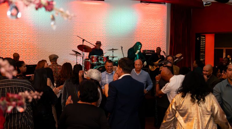 The spacious layout includes a central dance floor and stage, where guests can enjoy live jazz, swing, and salsa performances nightly, enhancing the vibrant ambiance, as well as hosting DJ performances on the weekend.